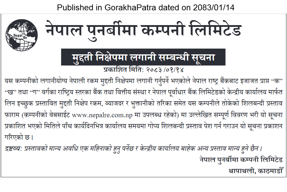 Read moreArticle of the Gorkhapatra daily on the seventh anniversary of Nepal Reinsurance Co. Ltd.