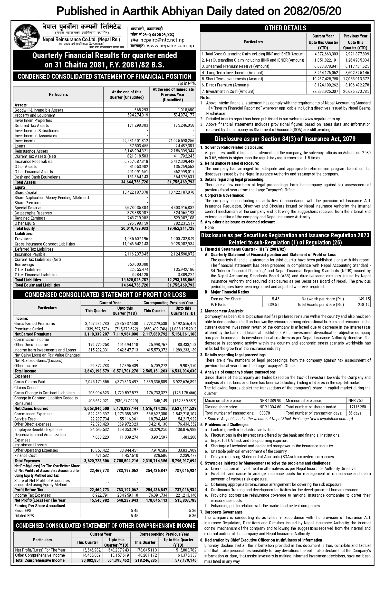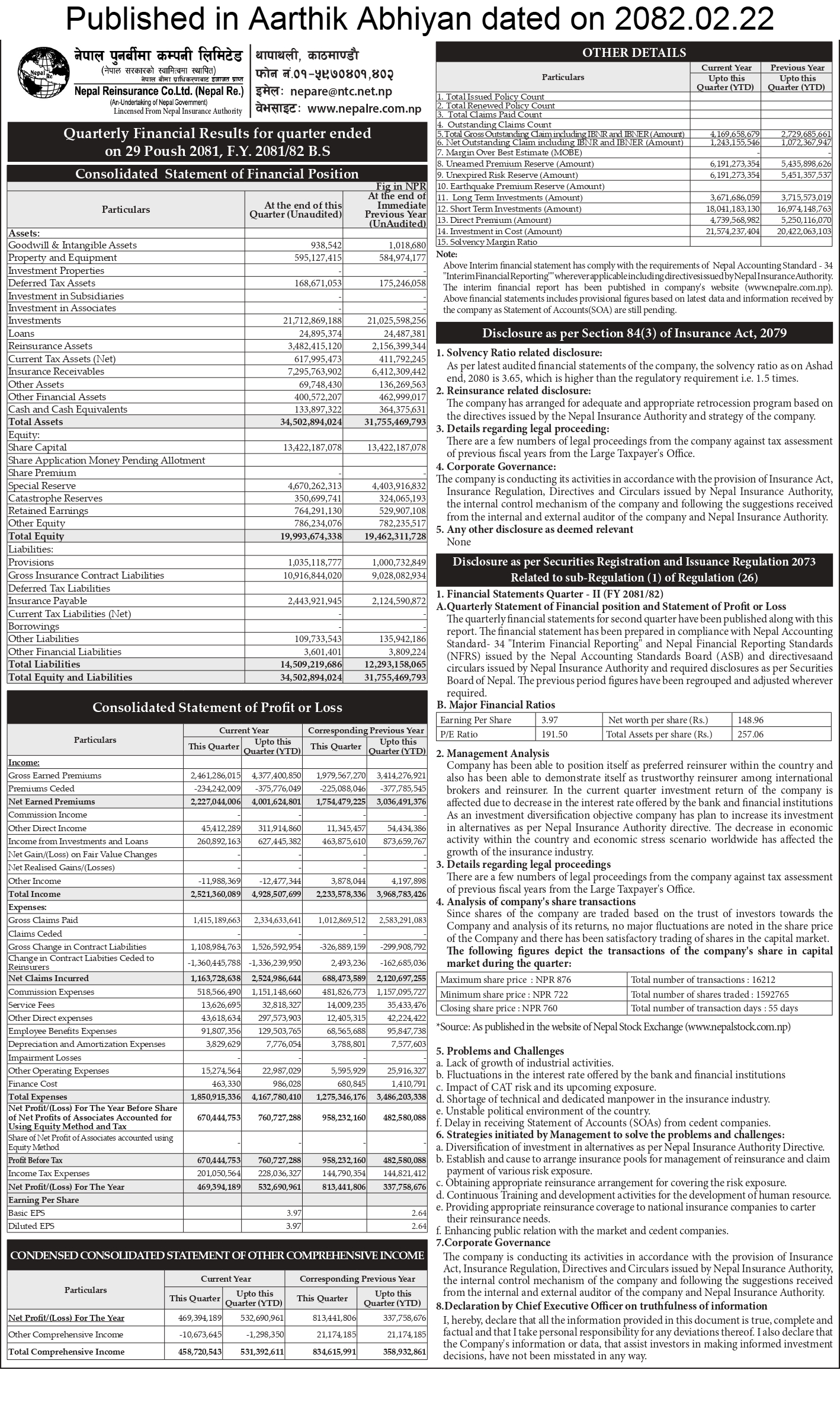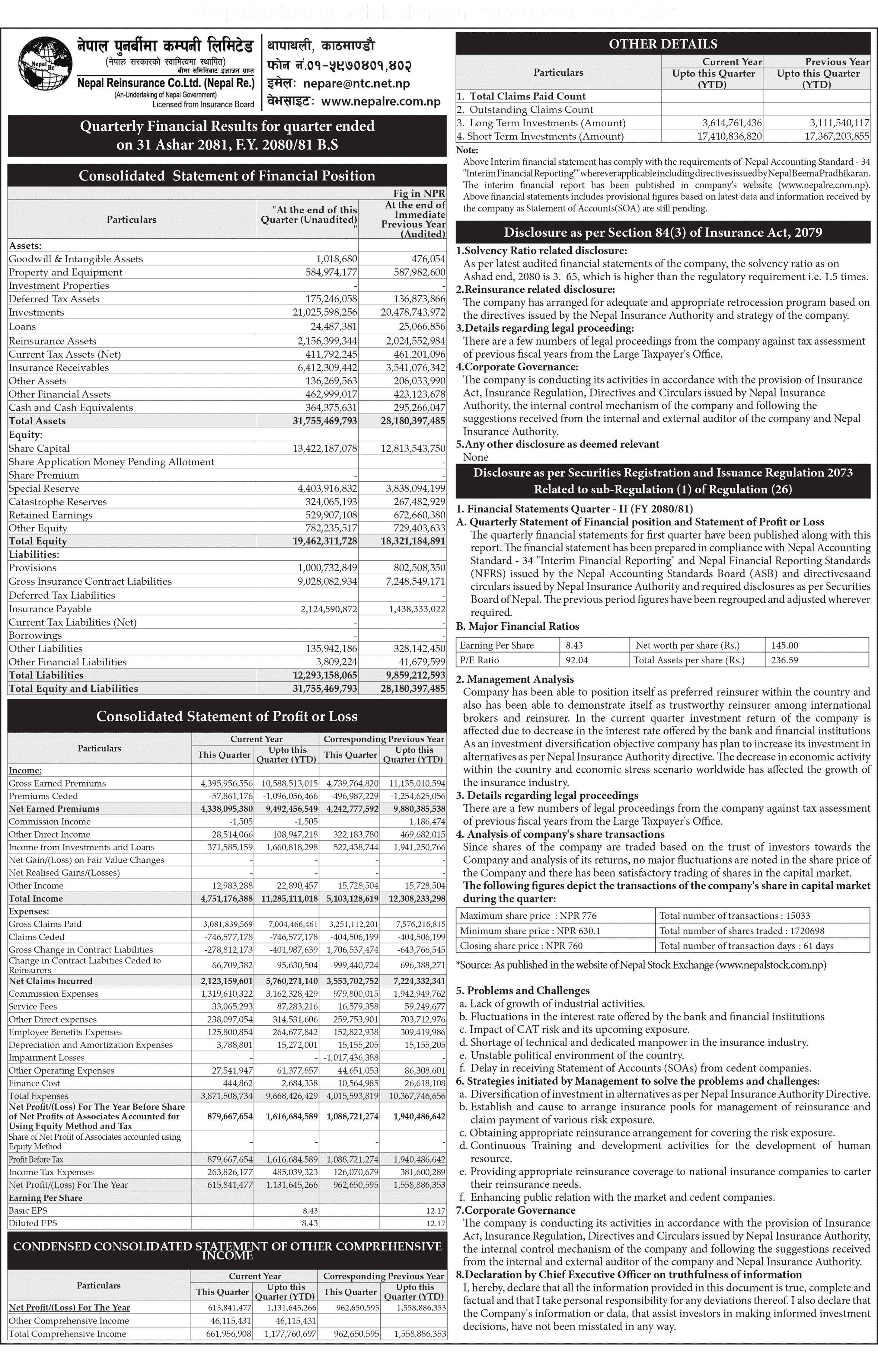 त्रैमासिक रिपोर्टहरू