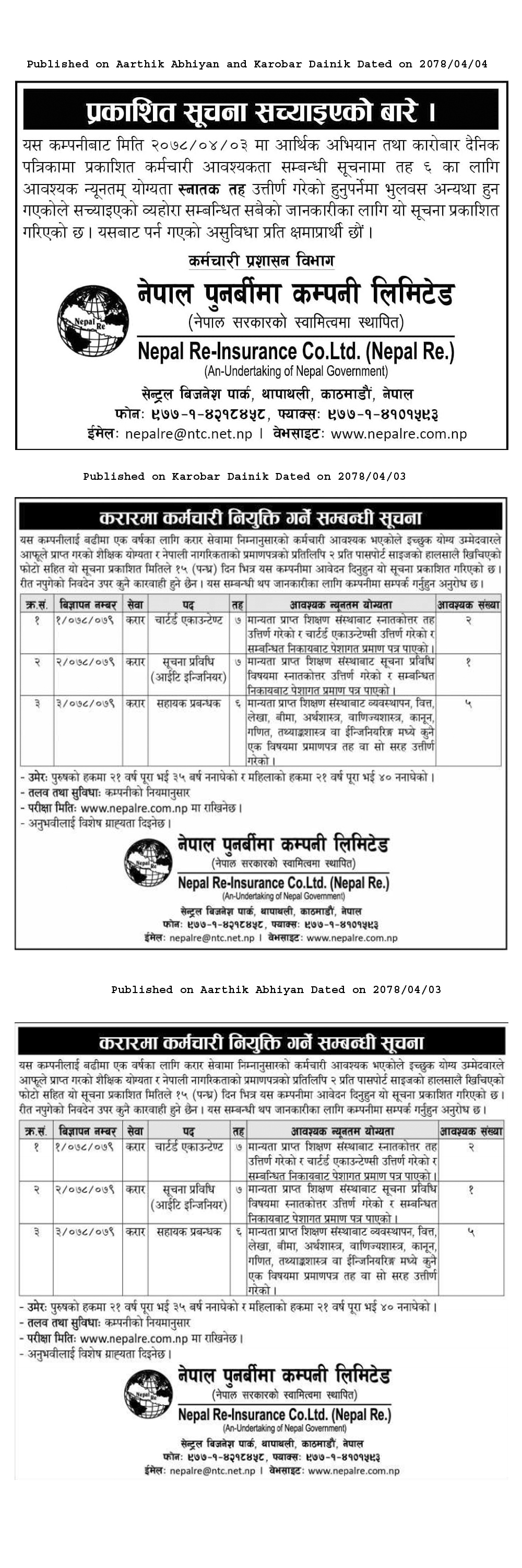 Notice Regarding Examination of Nepal Re-Insurance Company Limited.