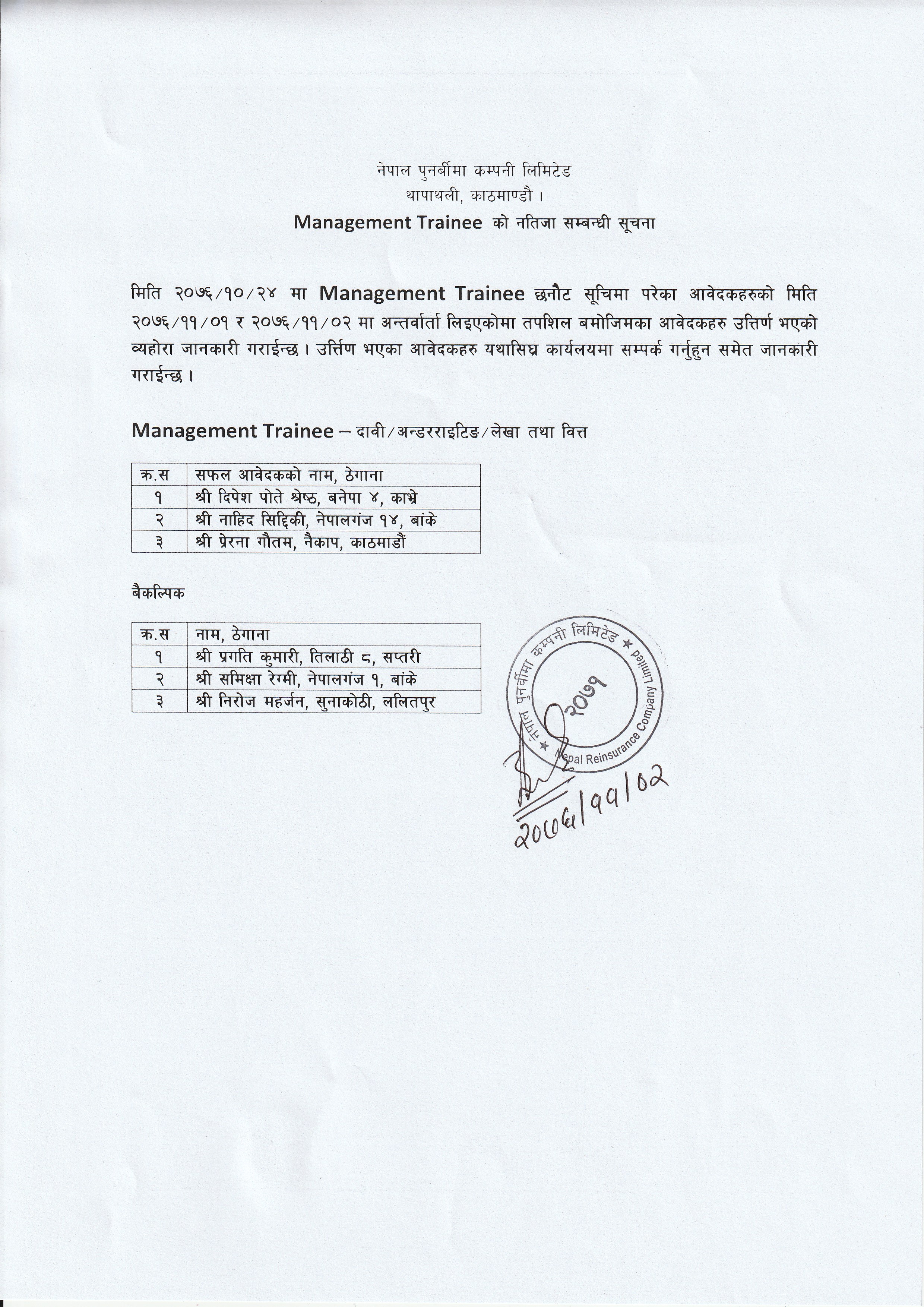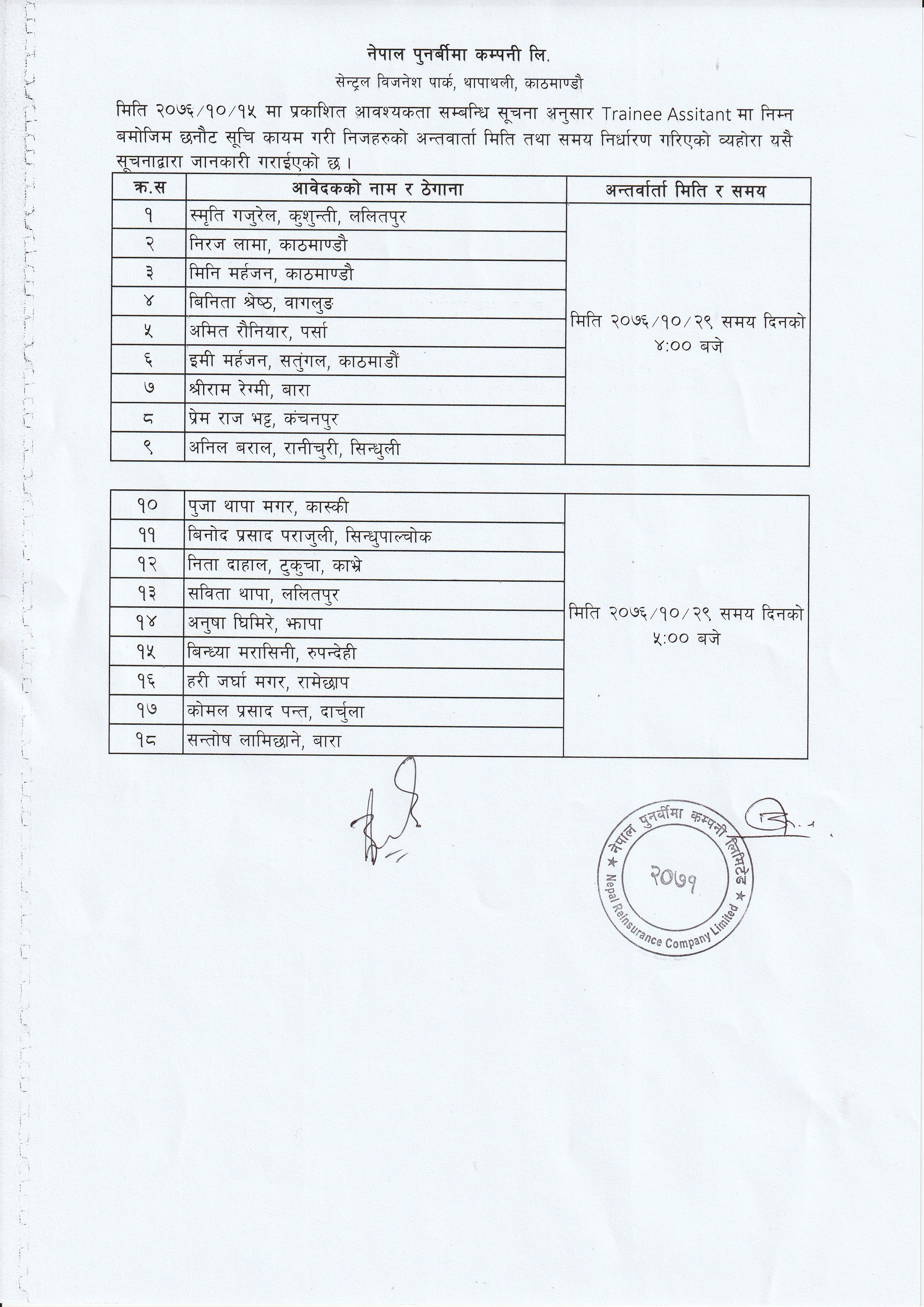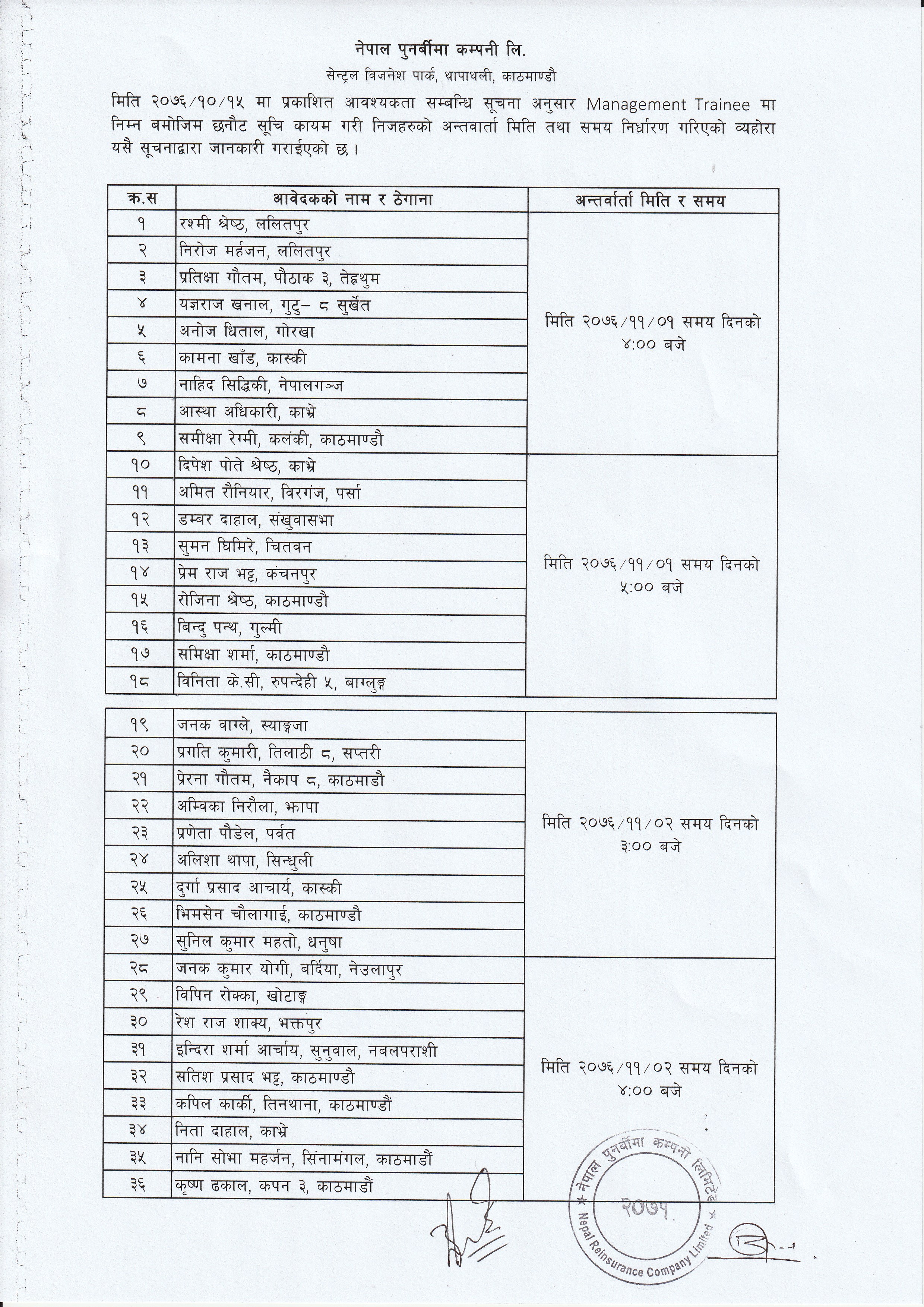 Detail of Shortlisted candidate, Schedule for interview of Management Trainee.