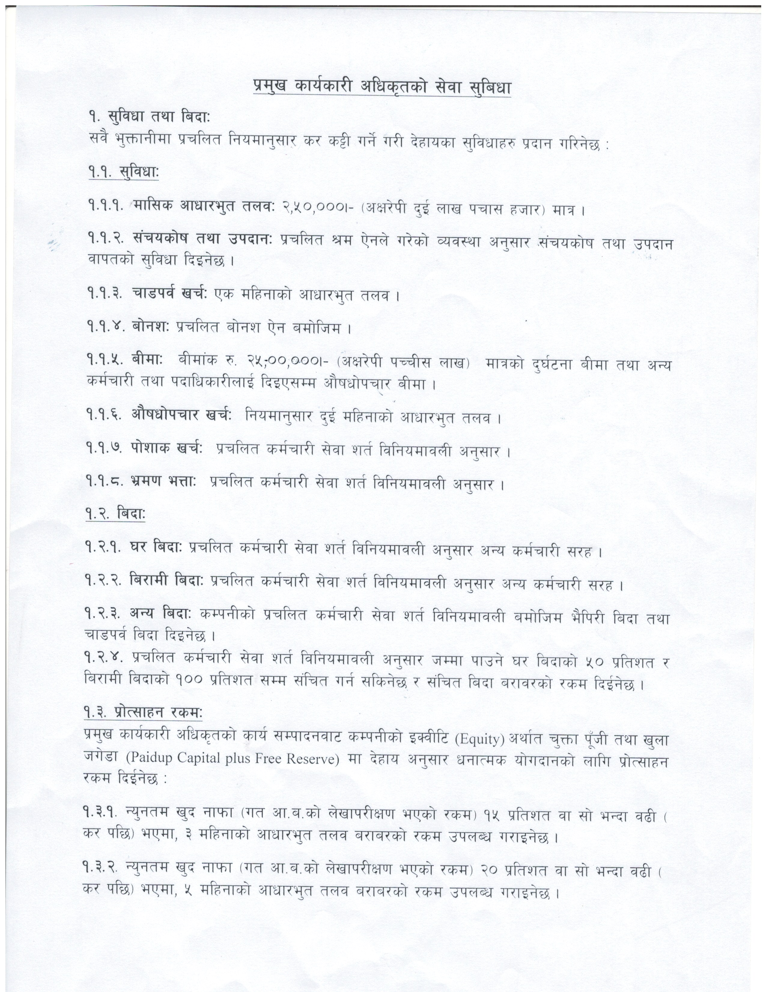 प्रमुख कार्यकारी अधिकृतको सेवा सुबिधा
