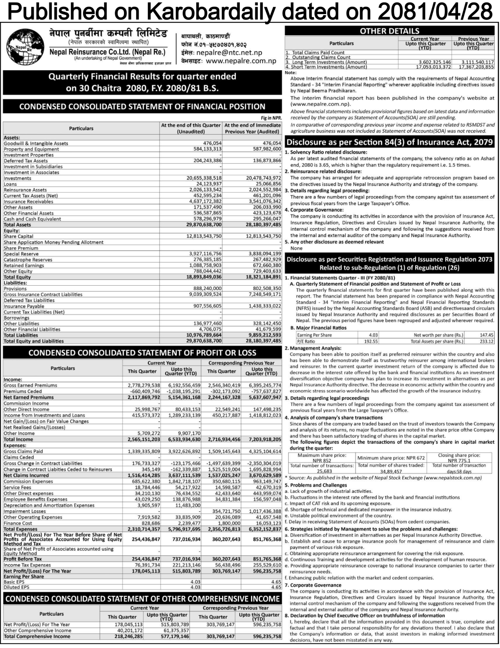 List of Reinsurance Brokers for Retrocession 2082-83 (2025-26)
